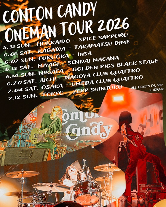 トップページ > 公演スケジュール > 公演情報詳細 Conton Candy Conton Candy ONEMAN TOUR 2026 2026/06/13(土) 開場17:00|開演17:30 仙台MACANA 会場情報 券種・料金 オールスタンディング ¥4,500 ※入場時ドリンク代別途必要 ※未就学児童入場不可 一般発売 発売詳細未定 お問い合わせフォーム:https://www.gip-web.co.jp/t/info※平日10:00~18:30対応※2~3営業日お時間を頂戴する場合がございます。※ドメイン指定受信、メール指定受信ご利用の方は、「@tayori.com」の受信設定をお願いいたします。※1週間以上お待ちいただいても返答がない場合は、受信設定を変更していただくか、別のアドレスから再度ご連絡ください。 ツイート