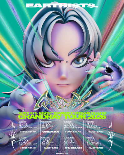 トップページ > 公演スケジュール > 公演情報詳細 Earthists. Earthists. GRANDRAY TOUR 2026 2026/05/09(土) 開場17:30|開演18:00 仙台LIVE HOUSE enn 2nd 会場情報 券種・料金 スタンディング ¥4,800 ※入場時ドリンク代別途必要 ※6歳未満入場不可・6歳以上有料 一般発売 発売詳細未定 お問い合わせフォーム:https://www.gip-web.co.jp/t/info※平日10:00~18:30対応※2~3営業日お時間を頂戴する場合がございます。※ドメイン指定受信、メール指定受信ご利用の方は、「@tayori.com」の受信設定をお願いいたします。※1週間以上お待ちいただいても返答がない場合は、受信設定を変更していただくか、別のアドレスから再度ご連絡ください。 ツイート
